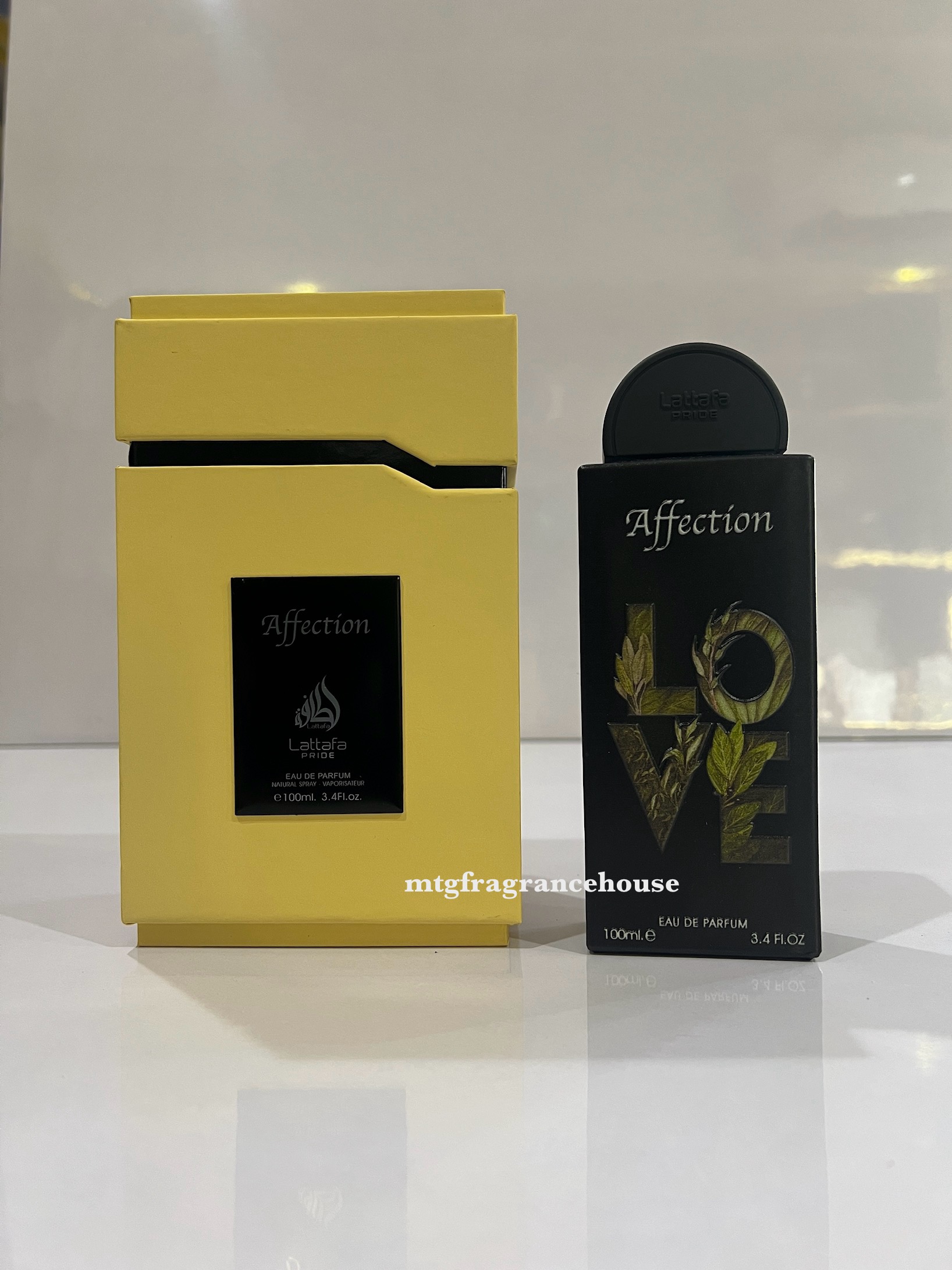 Love Affection 100ml Eau de parfum by Lattafa is a sweet, floral, and musky fragrance designed for women. It exudes warmth, elegance, and a romantic aura, making it perfect for those who love soft, feminine, and inviting scents.