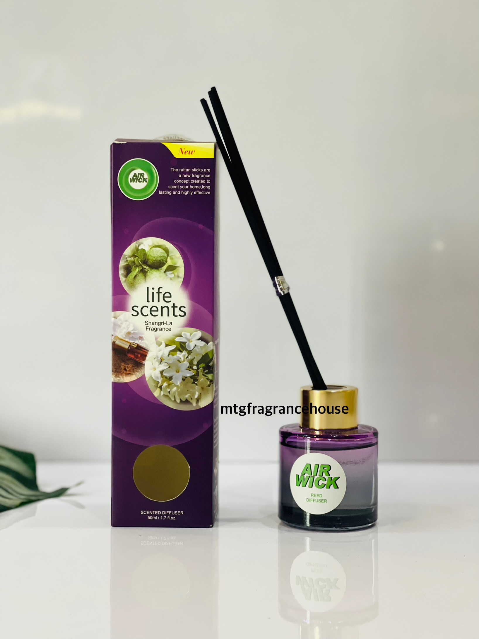Air Wick Reed Diffuser Shanghai-La Fragrance (50ml) is an elegant, serene scent inspired by the Shangri-La ambiance, blending soft floral and fresh tea-like notes with a whisper of warmth—ideal for a subtly luxurious and calming atmosphere.