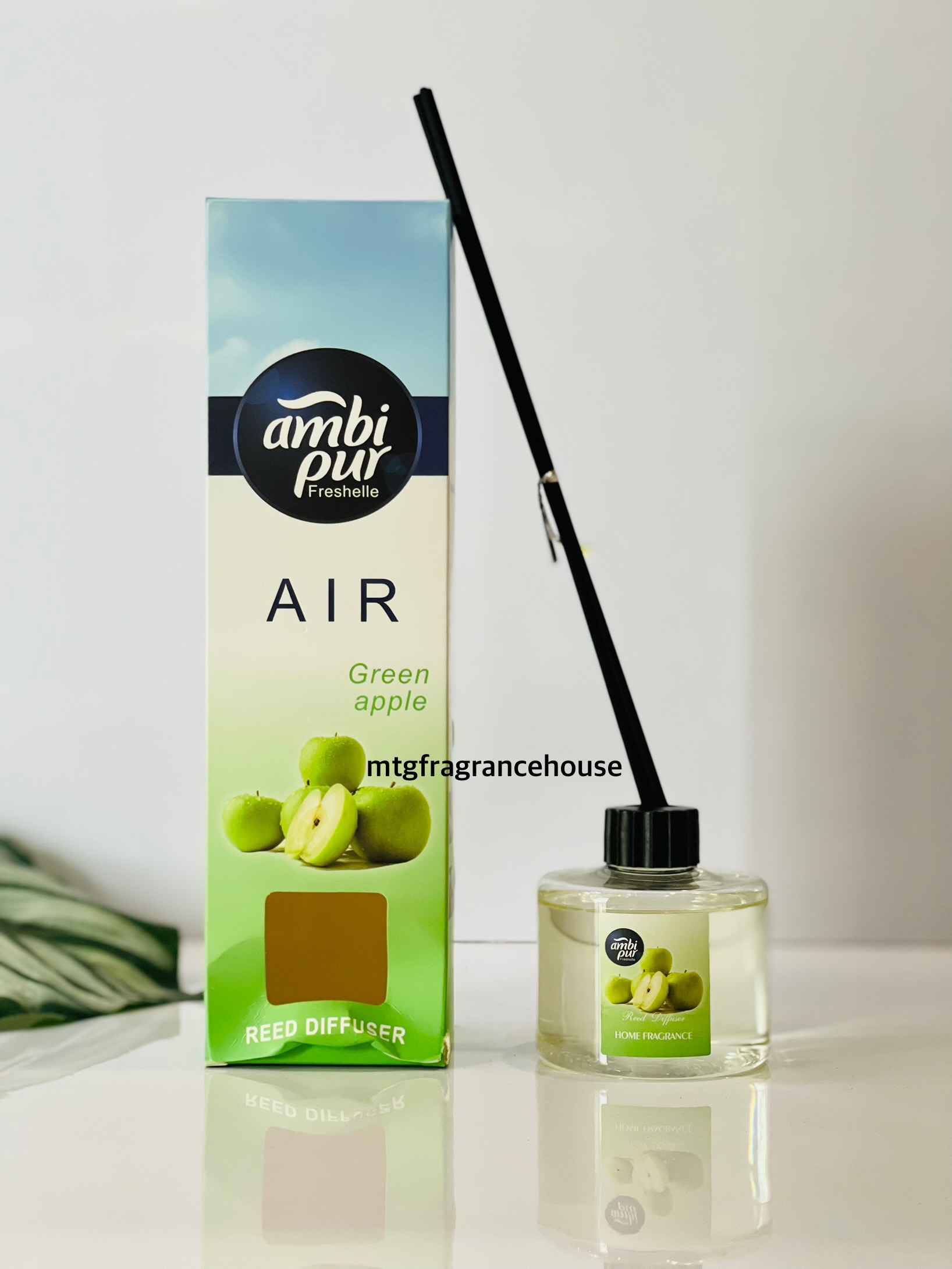 Ambi pur Reed Diffuser Green Apple small is a crisp, fruity scent bursting with the bright, juicy freshness of green apple—perfect for adding a clean, invigorating vibe to any space.