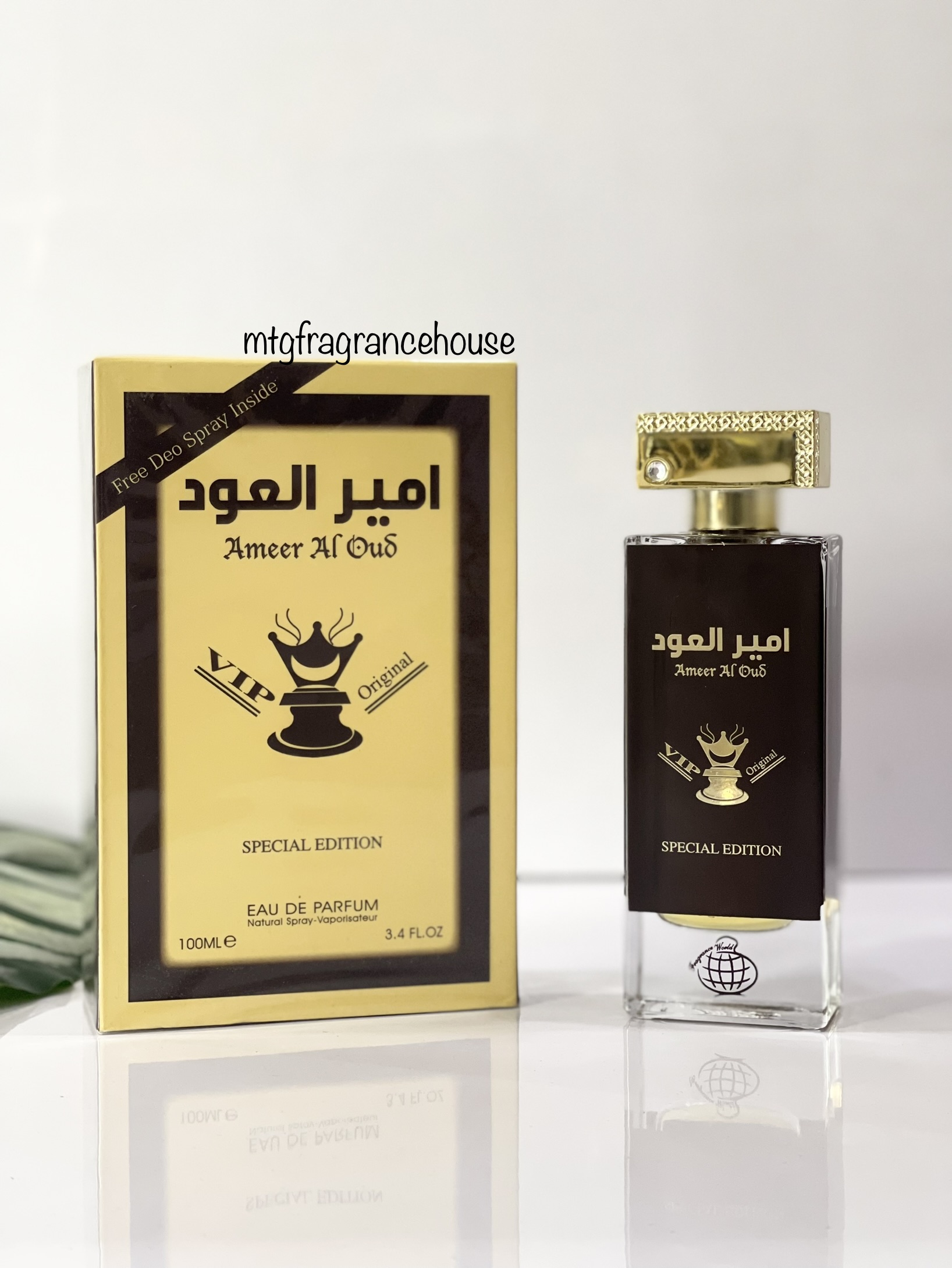 Ameer Al Oud Special Edition (100ml) by Fragrance World is a unisex Eau de Parfum that embodies the rich and exotic essence of Middle Eastern perfumery. This fragrance is designed for individuals who appreciate deep, opulent scents with a harmonious blend of woody and spicy notes.