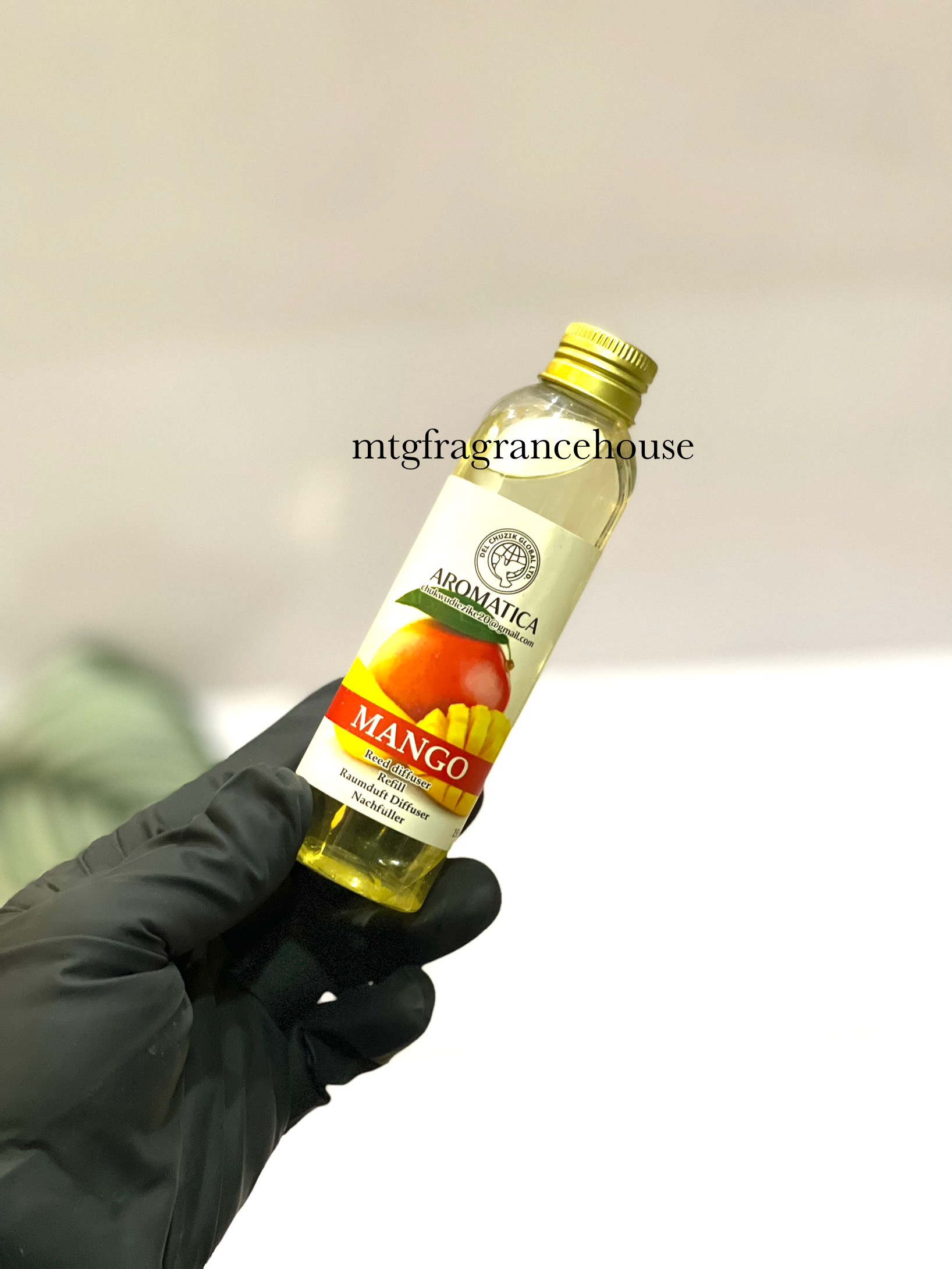 Diffuser refill- Mango is typically a reed diffuser containing scent oils—commonly natural or crafted blends—with mango as the signature note. The oils are housed in a decorative glass bottle and dispersed into the air via reed sticks. Unlike candles or electric diffusers, they require no heat or flames, making them safe, low-maintenance, and long-lasting