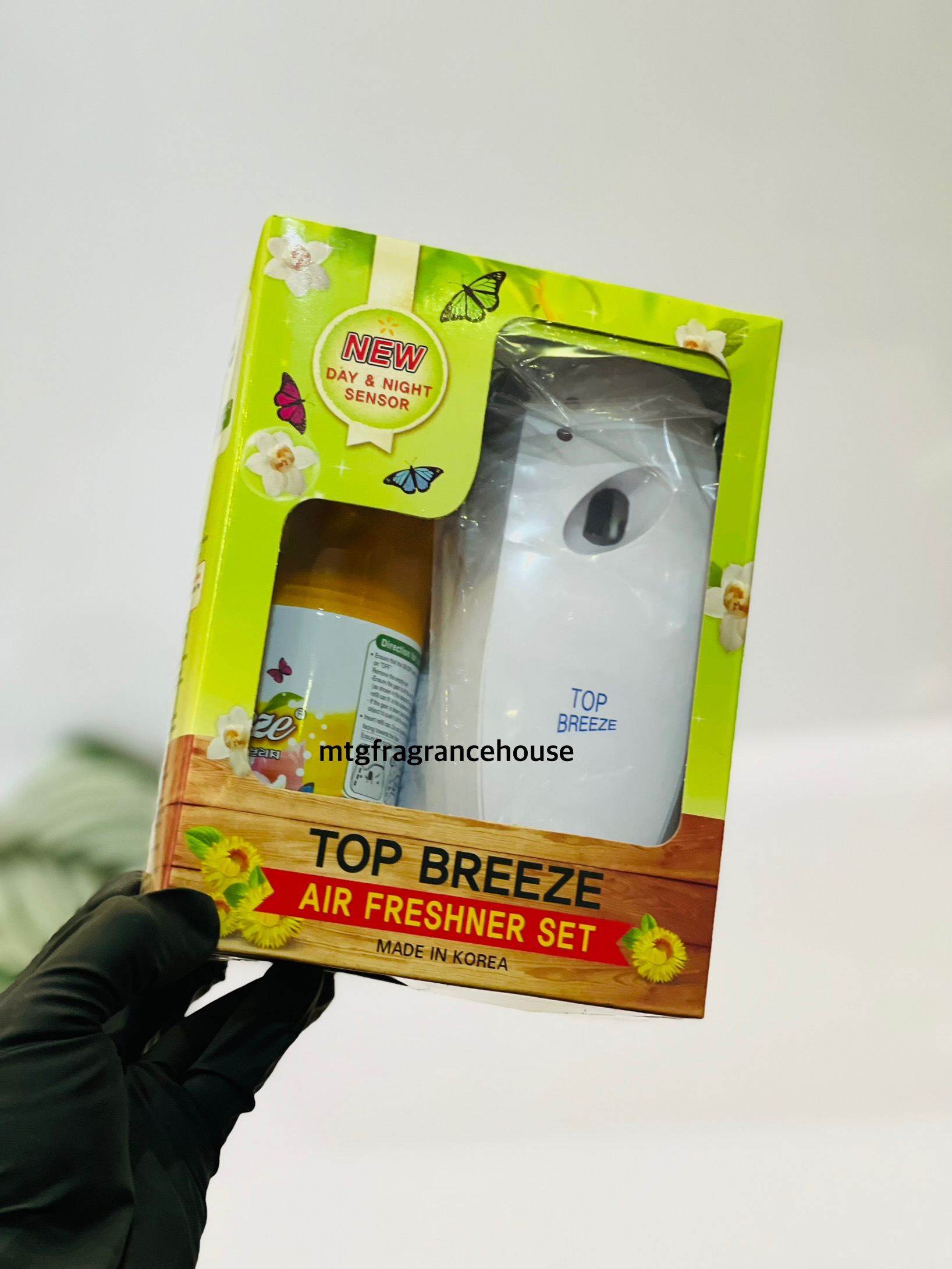 The Top Breeze automatic spray machine is an aerosol-based fragrance dispenser that releases timed bursts of scent, helping maintain continuous freshness in your living or working space. Often sold as a complete set, it may include: