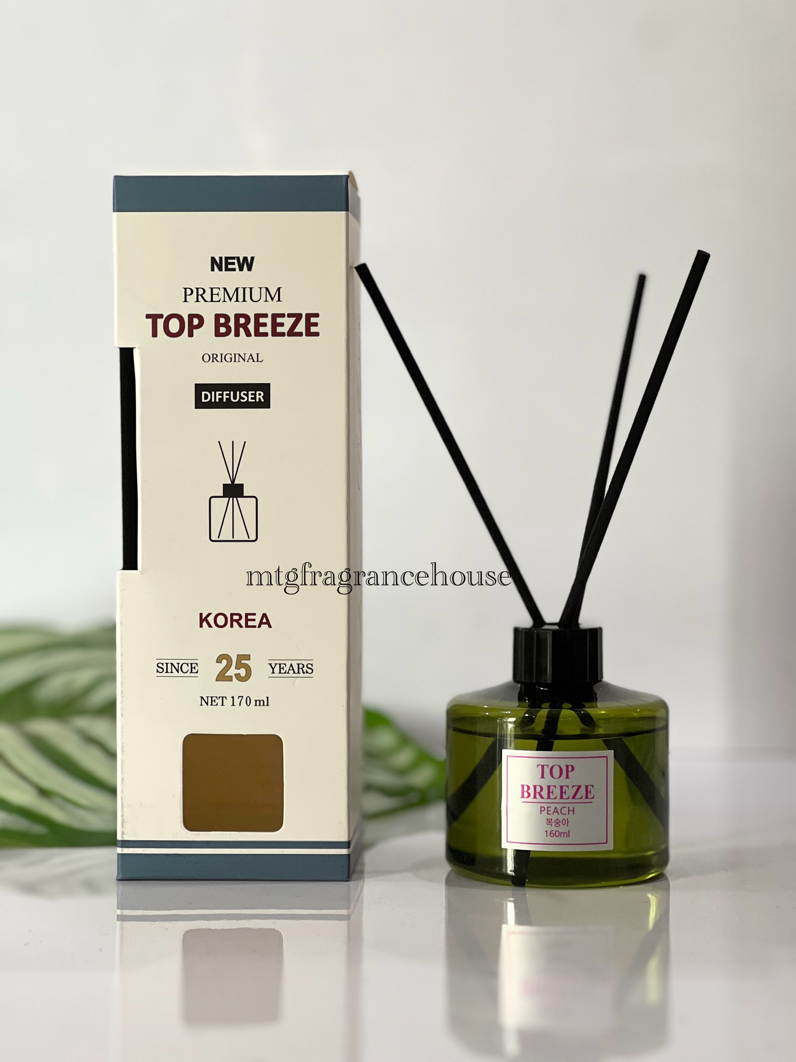 Top breeze Reed diffuser peach (170ml) is a Offers a fresh, floral-fruity aroma with rose and lily-of-the-valley top notes, rounding into a comforting heart of patchouli and settling on a warm base of amber, sandalwood, oud, and vanilla. Perfect for infusing your space with bright, cozy vibes.