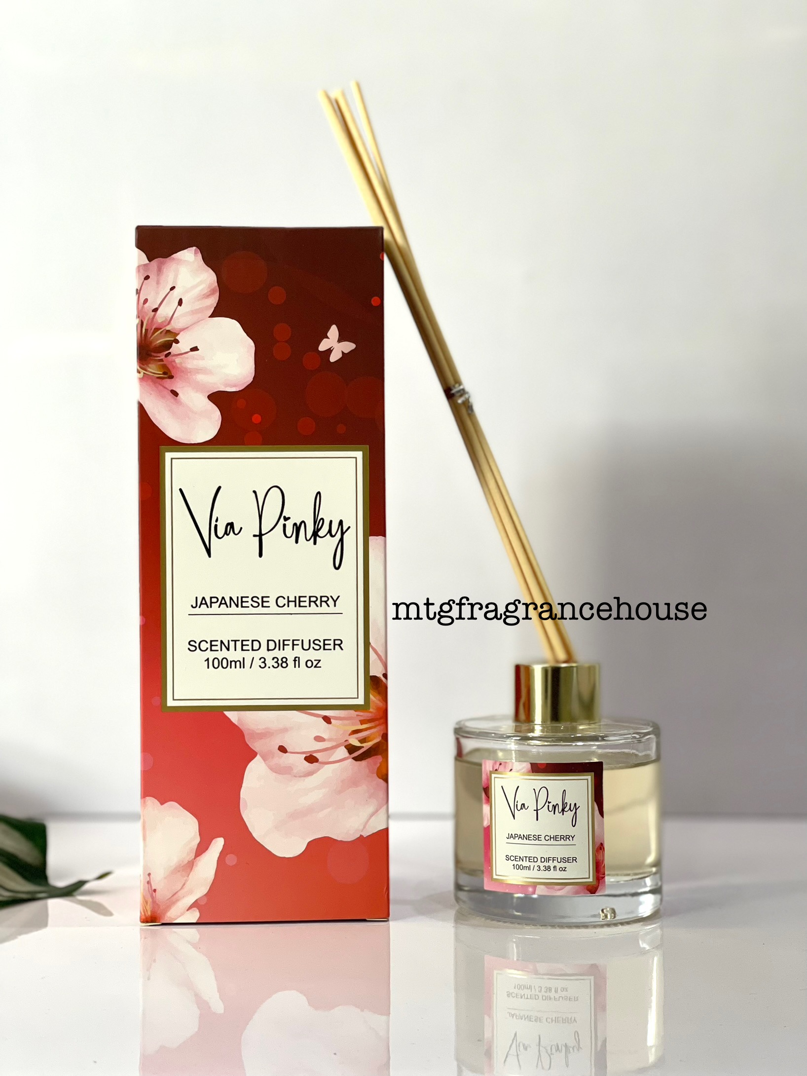 Japanese cherry diffuser (100ml) by Via Pinky is a subtle, clean floral-fruity diffuser that evokes cherry blossoms with a soft fruity sweetness and a gentle woody undertone—perfect for creating a serene, fresh ambience. The fiber reeds offer robust diffusion.
