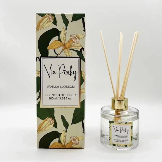 Vannila Blossom diffuser (100ml) by Via Pinky is a clean, subtly sweet vanilla-floral diffuser that brings a soft, comforting warmth to any space—think gentle blossoms atop a creamy vanilla heart. It uses fiber reeds for a strong, consistent scent throw.